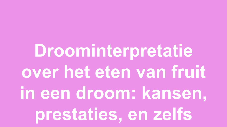 Dromen over fruit kunnen ons veel vertellen over onze innerlijke wereld en de kansen die voor ons liggen. Het is belangrijk om aandacht te besteden aan deze dromen en ze te interpreteren in de context van ons leven. Dus de volgende keer dat je droomt over het eten van fruit, neem even de tijd om na te denken over wat het voor jou kan betekenen. Misschien is het een teken dat je klaar bent voor een nieuwe uitdaging of dat er iets moois op komst is. Deel je dromen met anderen en ontdek samen de betekenis ervan!