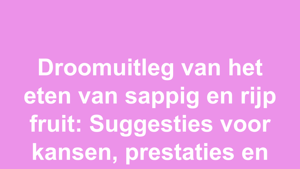 Heb je ooit gedroomd over het eten van rijpe en sappige vruchten? Het kan een verrassend krachtige betekenis hebben. Dromen zijn vaak een reflectie van onze diepste verlangens en emoties. Eerlijk gezegd, ik heb het zelf ook meegemaakt. Het voelde zo levendig en echt. Het is fascinerend hoe ons onderbewustzijn ons soms boodschappen geeft die we niet meteen begrijpen.